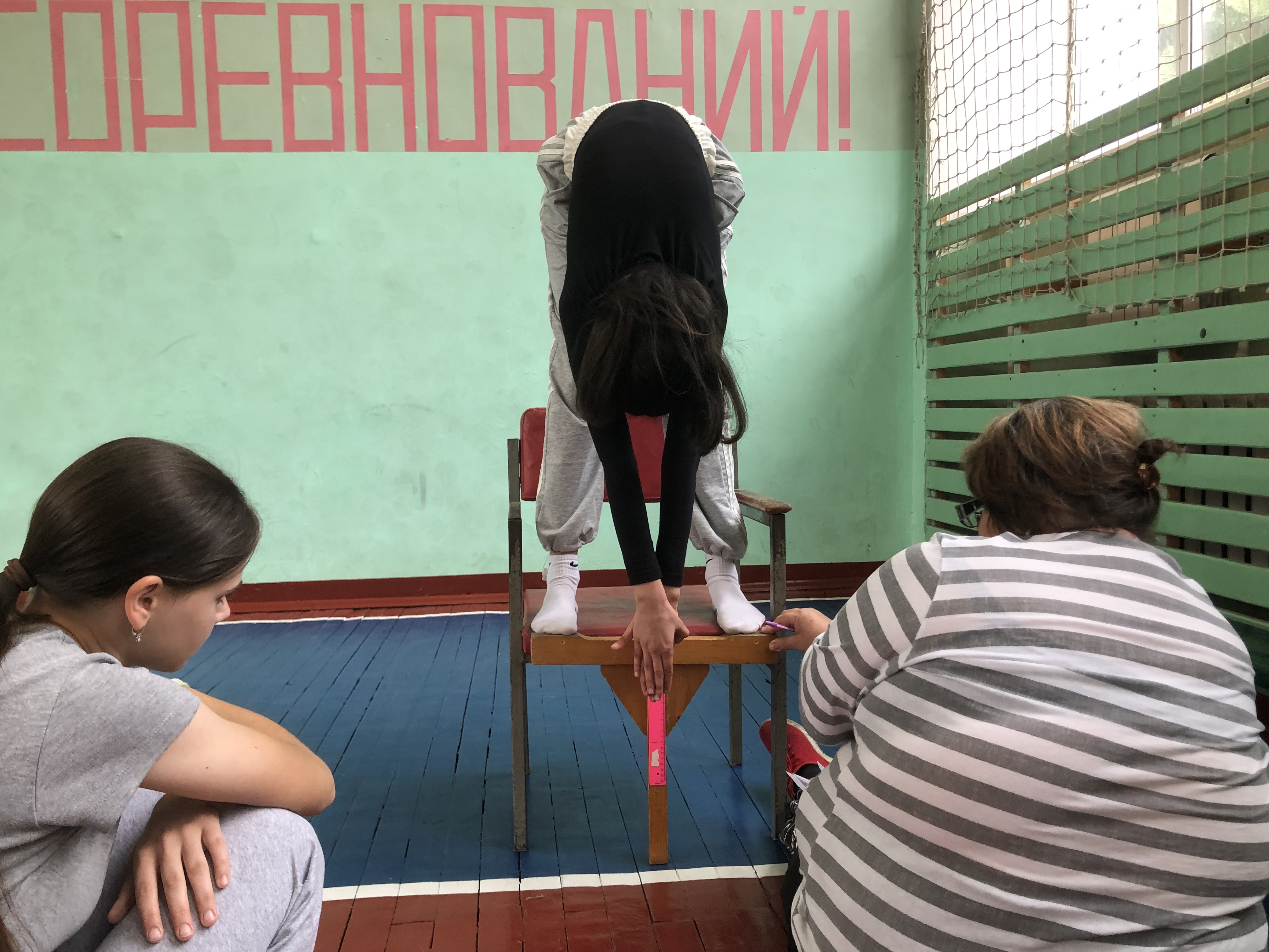 •наклон вперед из положения стоя с прямыми ногами на гимнастической скамье;